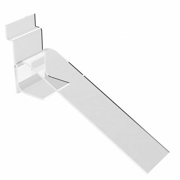 Для оснащения витрин магазинов, основной специализацией которых является продажа обуви, отлично подойдет данная конструкция. Наклонная полка для обуви с опорой позволяет использовать экономпанели, как витрину престижного обувного магазина. Установка полки осуществляется в пазы экономпанели. При помощи нескольких таких полок, можно не только выгодно разметить обувную продукцию, но и украсить интерьер магазина.